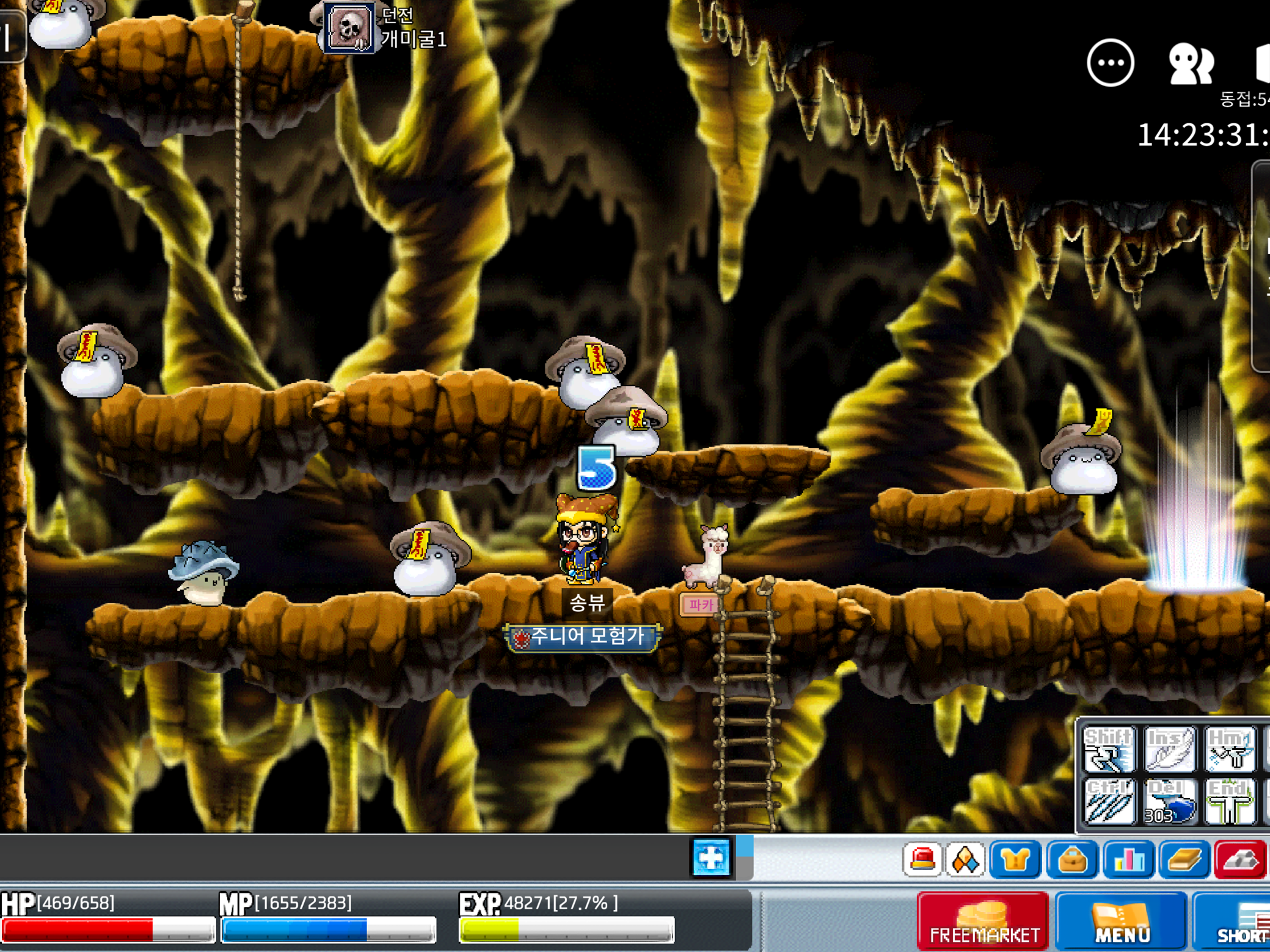 파티원1 구역에서는 뿔버섯만 나오고, 파티원 2,3 구역은 거의 좀비버섯만 나옵니다. 제 개인적인 경험으로는 뿔버섯 사냥이 제일 쉬운 장소라고 생각합니다.