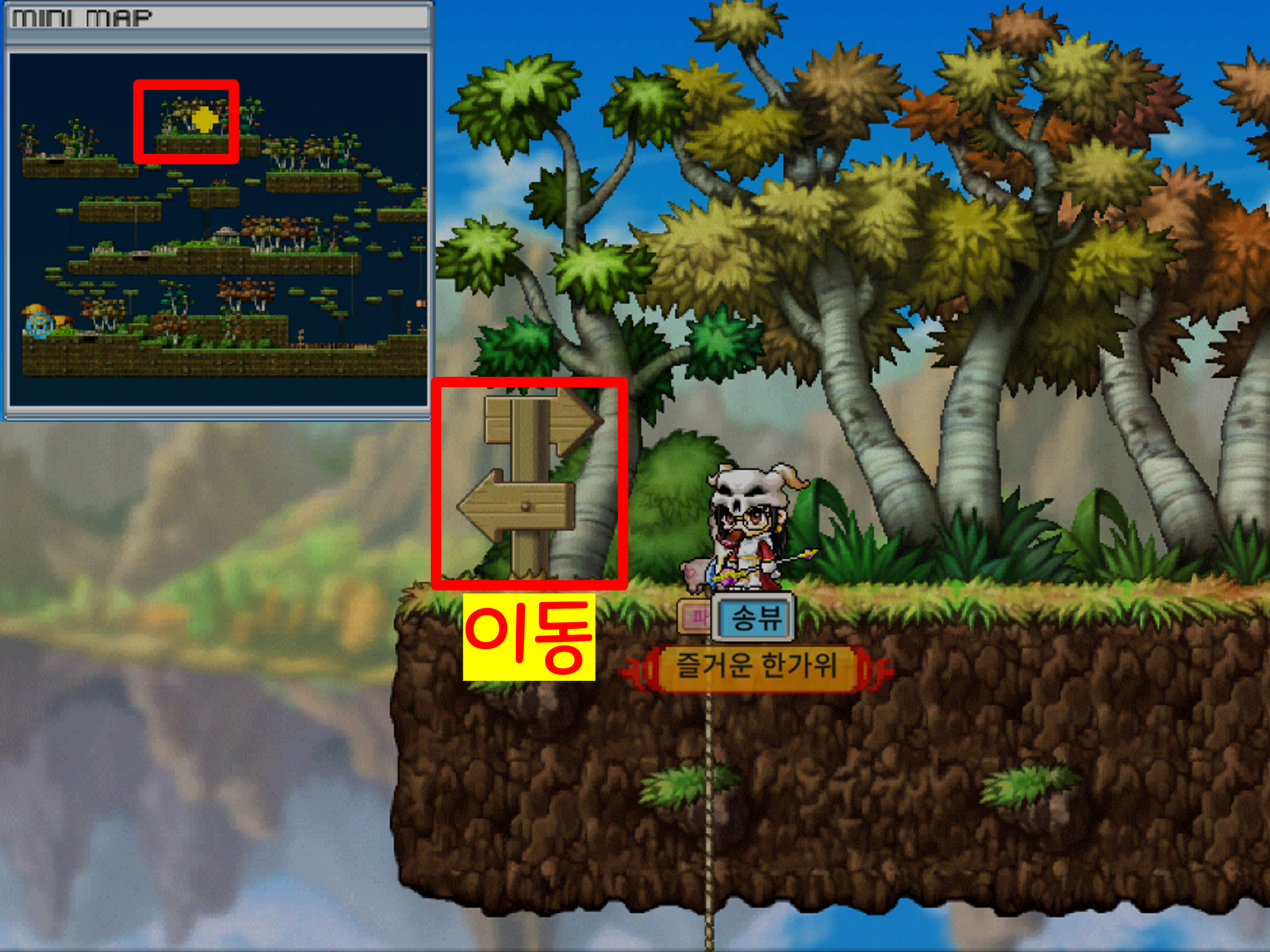 왜인지 생뚱맞게 표지판이 있습니다. 이곳에서 방향키 위( ↑ )를 눌러주시면...