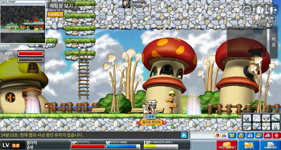 앞서도 말씀드렸지만 파란버섯은 빠르고 공격력이 강하기 때문에 포션을 많이 사용하게 되실 수 있습니다. 때문에 충분한 장비를 맞추신 후에 사냥을 하시거나 23~25렙을 찍고 오시는 것도 도움이 되실겁니다.
