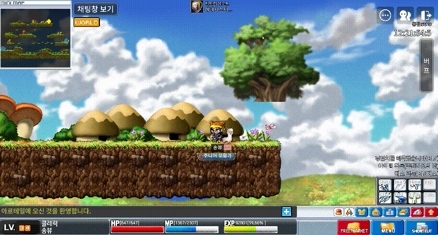 헤네시스 서쪽 언덕 맨 위층 이곳에서 방향키 위( ↑ )를 눌러 이동하시면 버섯동산으로 이동하게 됩니다
