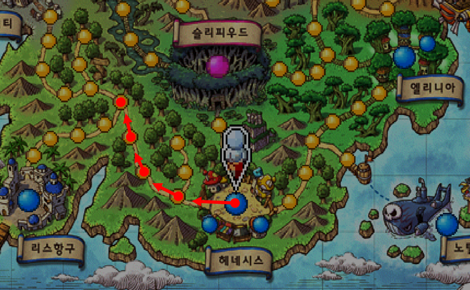 우선 헤네시스 왼쪽 끝 포탈쪽으로 이동합니다