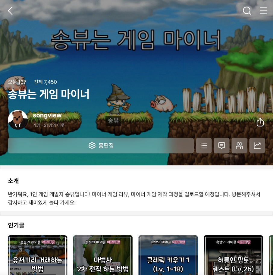 그래서 네이버 블로그를 통해서 "송뷰는 게임마이너"로